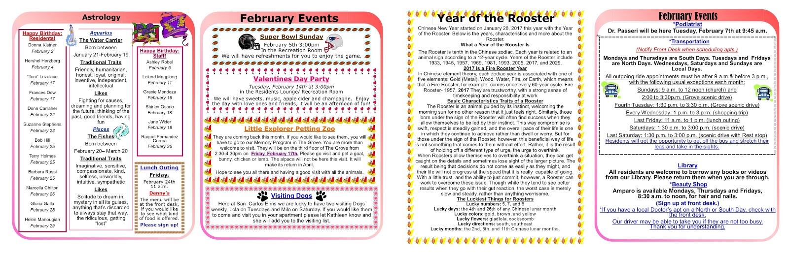 San Carlos Elms Activities for February 2017